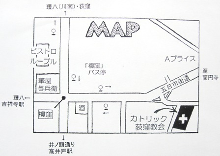 ![]() | JR中央・ 総武線 荻窪駅 | 南口4番バス乗り場 関東バス 「千歳烏山駅経由北野」ゆき 「日本年金機構入口」ゆき 「五日市街道営業所」ゆき いずれもOK!約10分 | 柳窪(やなぎくぼ) 下車徒歩3分(下の地図参照) |